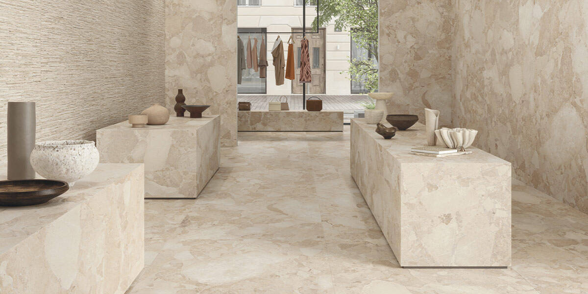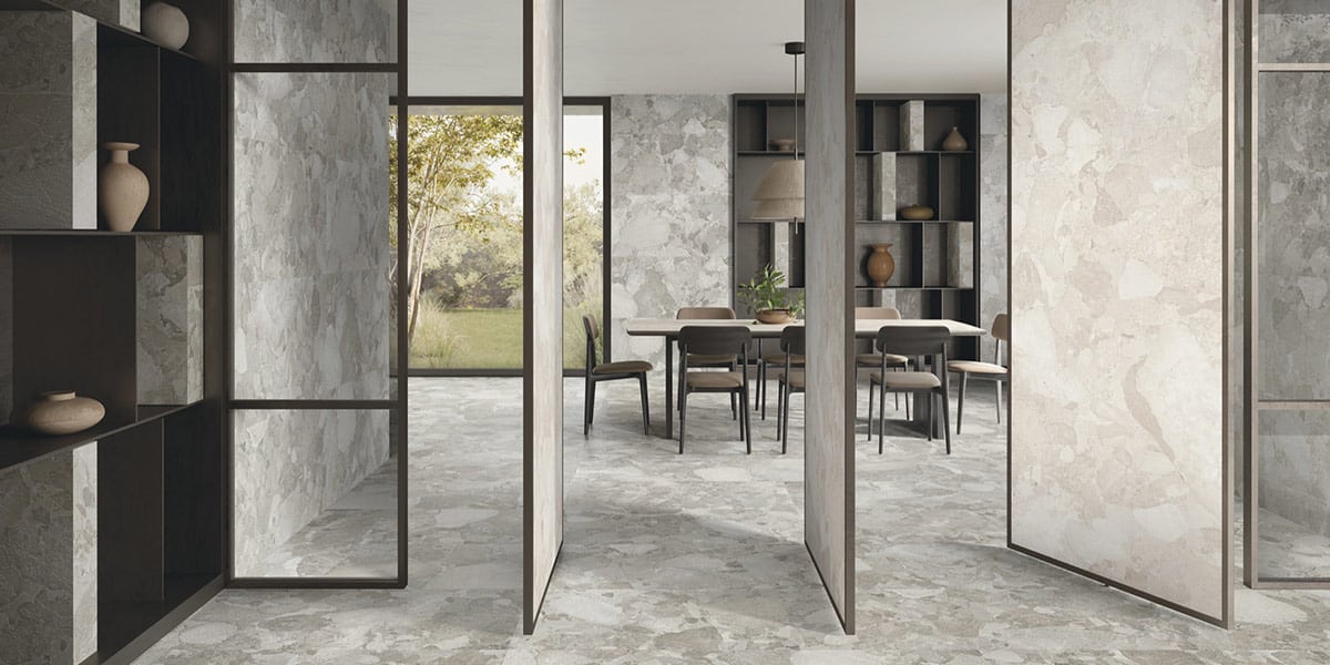 Materastone draws inspiration from a singular, ancient stone block, blending innovation with refined design. The collection features two complementary styles: Neutra, with a smooth, subtle texture and natural veining, and Sassi, which showcases dynamic pebble patterns and visual depth. Together, they offer a balanced contrast of elegance and texture.